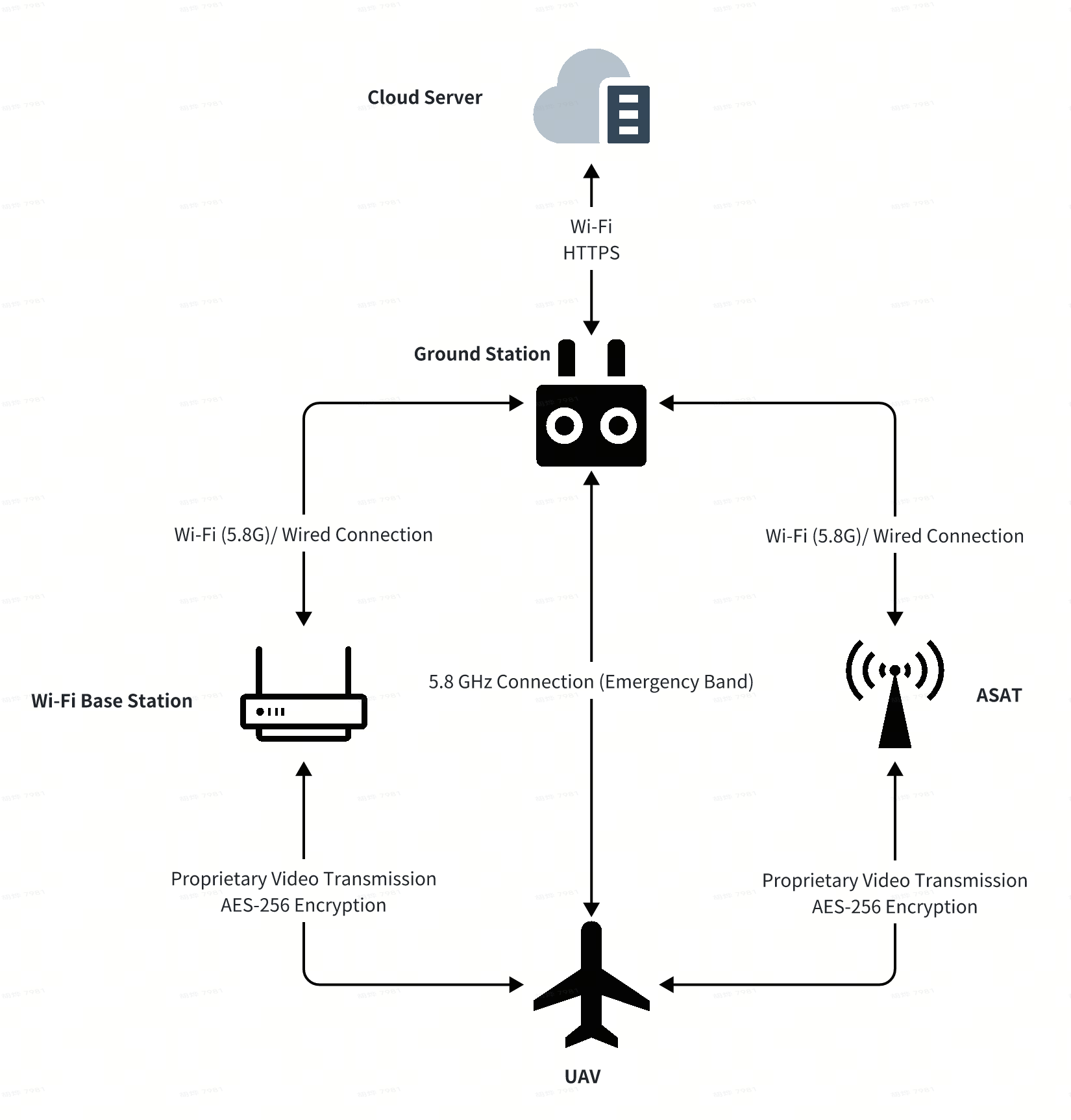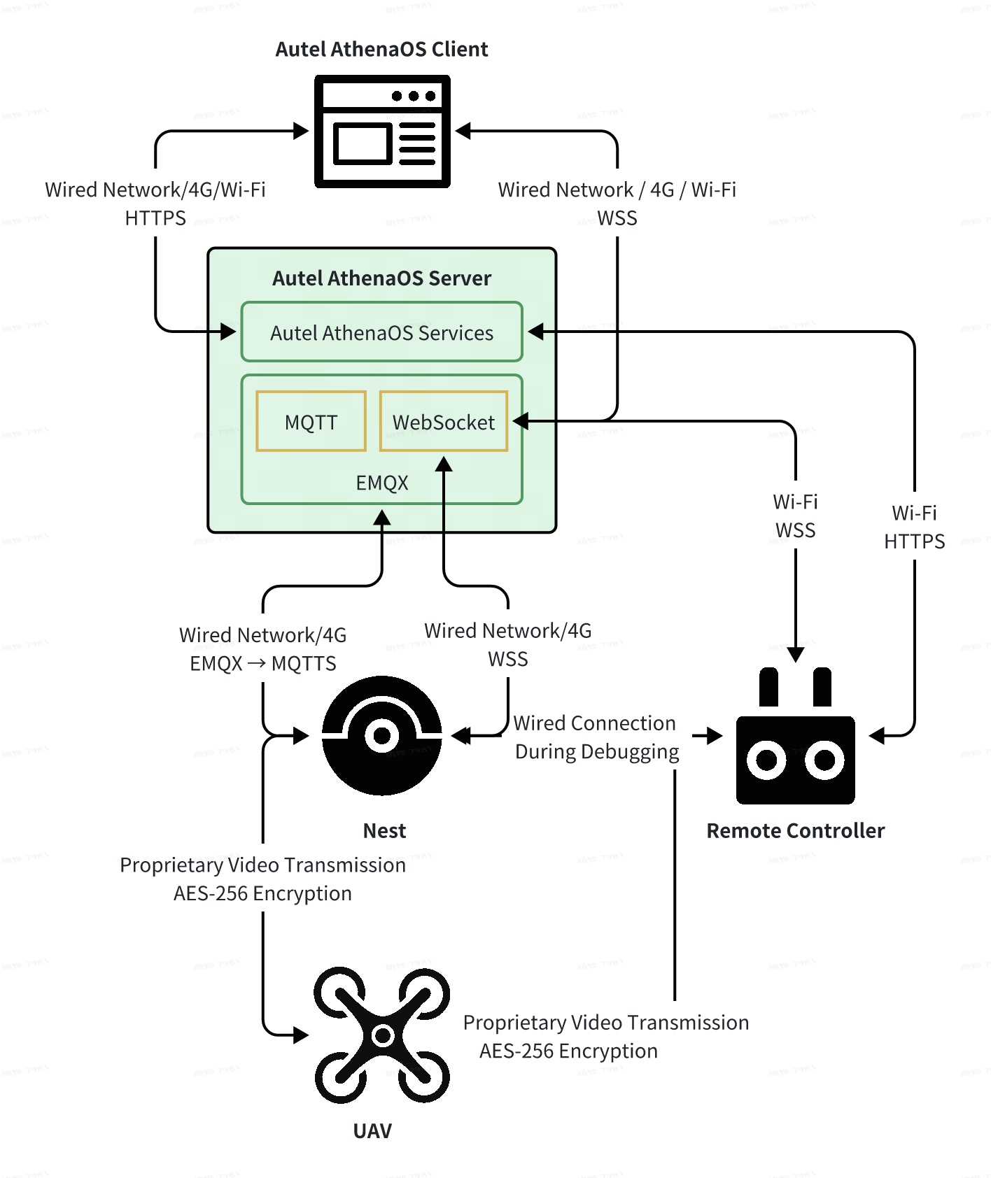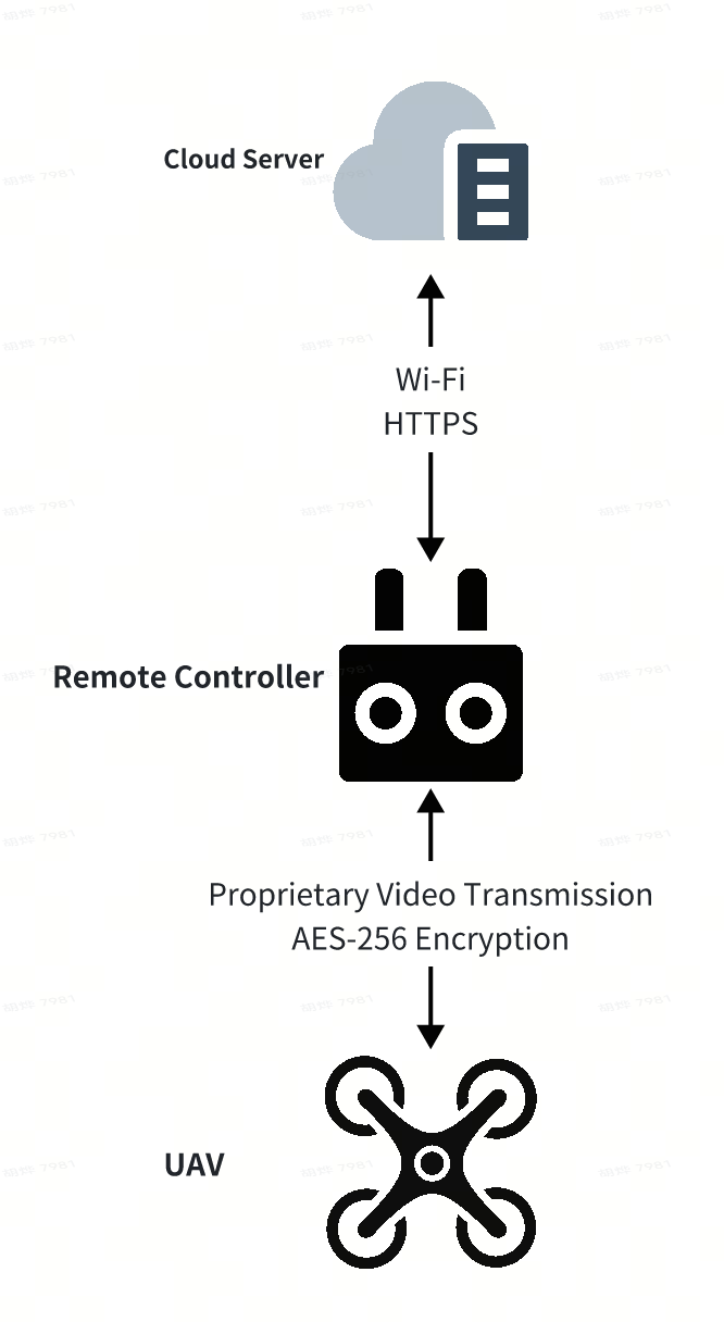 SkyLink is a proprietary protocol developed by Autel Robotics, featuring built-in security mechanisms. This communication solution is implemented across all UAVs manufactured by Autel Robotics. Its control link is encrypted using the AES-256 algorithm. The session key used for encryption is generated by a random number generator upon each UAV startup, ensuring that a unique key is used each time. Furthermore, the UAV's video transmission is also encrypted using the AES-256 algorithm.
